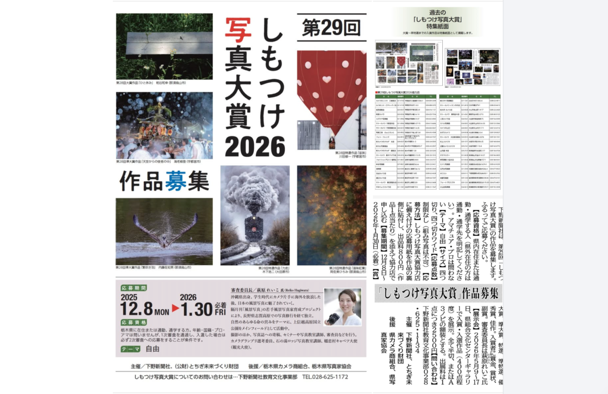 下野新聞社さん主催の第29回「しもつけ写真大賞」のお知らせ